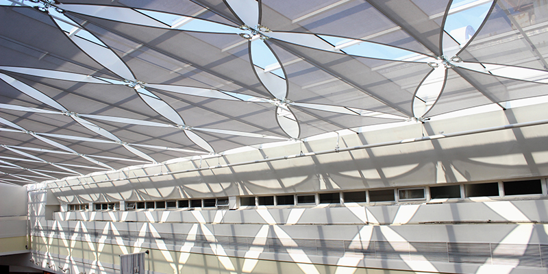 Se aplica en aquellos productos (Cubiertas Tensadas, Fachadas Textiles, tendidos de sombra, etc.) que pueden ser tanto exteriores como interiores, los cuáles además de su rol estético, cumplen una importante función en el acondicionamiento de los espacios.