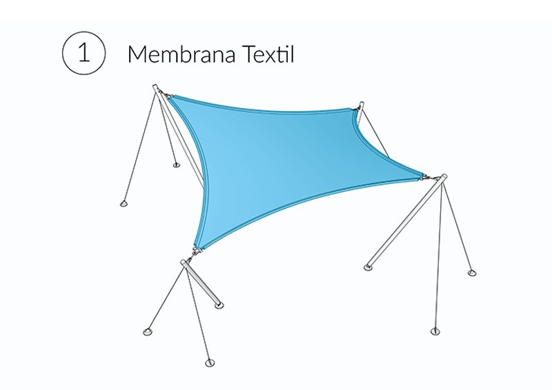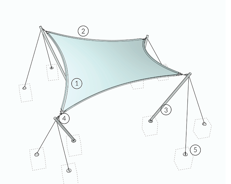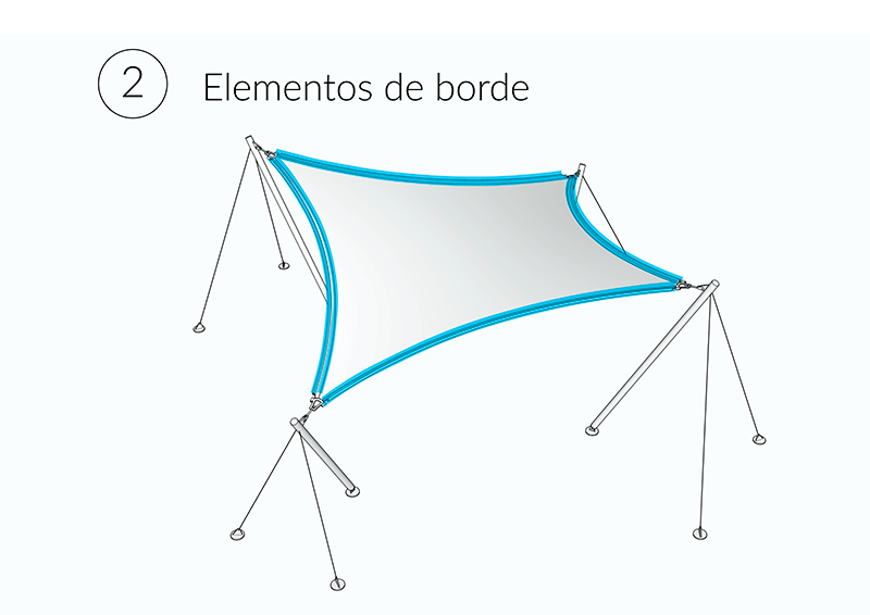 La definición de esta forma está directamente ligada a la disposición relativa entre los elementos de borde y soporte de la membrana, como cables, mástiles o arcos que en conjunto con la membrana completan el sistema de la tensoestructura.