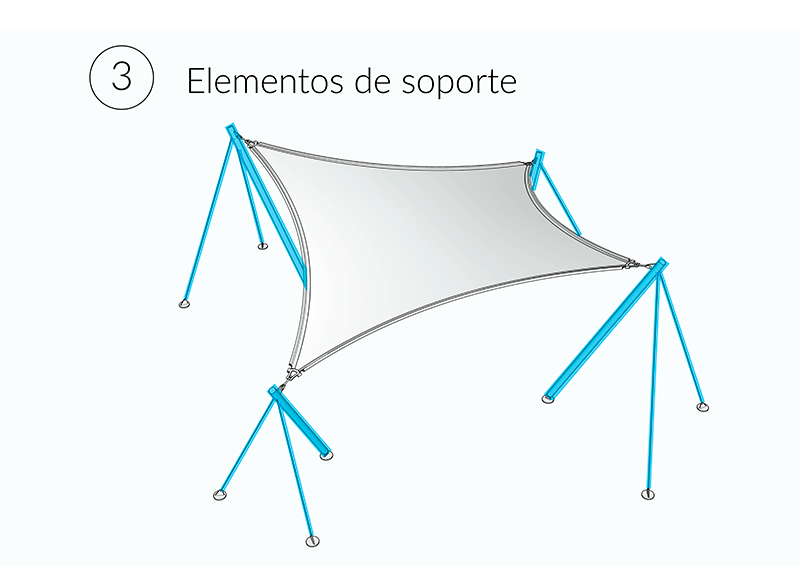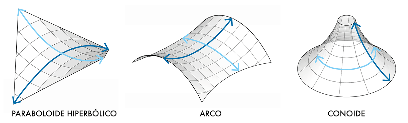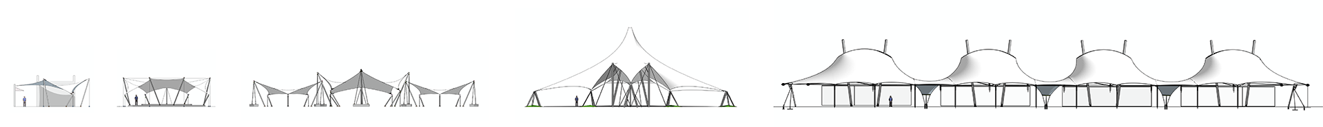 La mayor parte de las estructuras tensadas derivan de tres formas básicas, y La combinación de las mismas permite una gran diversidad formal, ajustándose a las necesidades de cada espacio.
