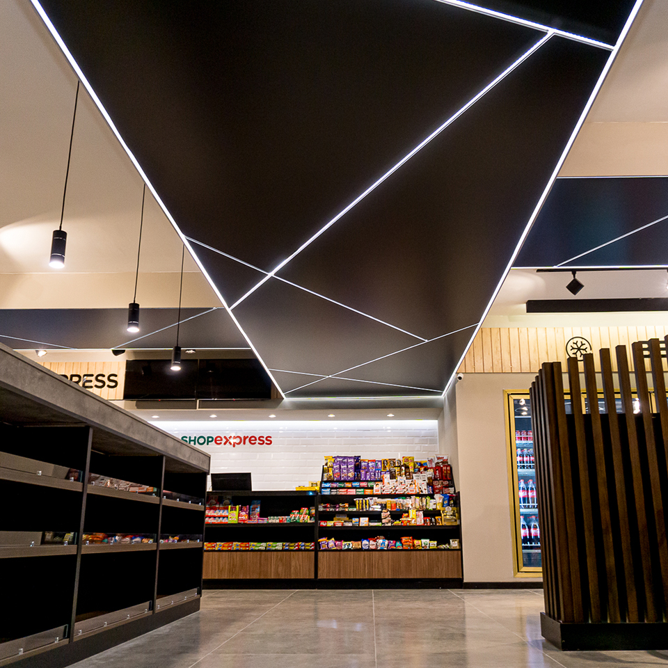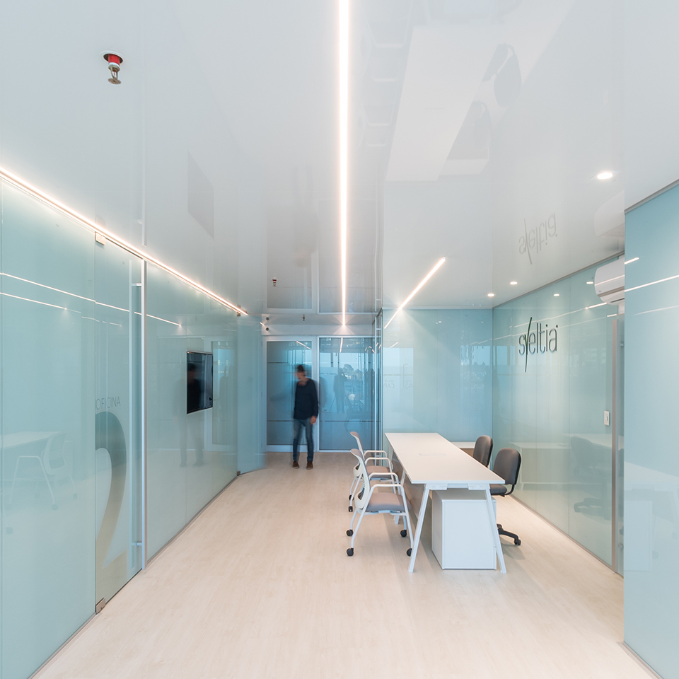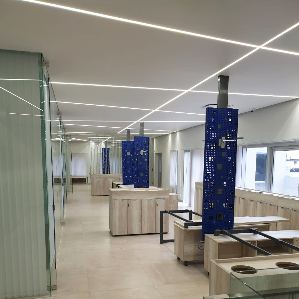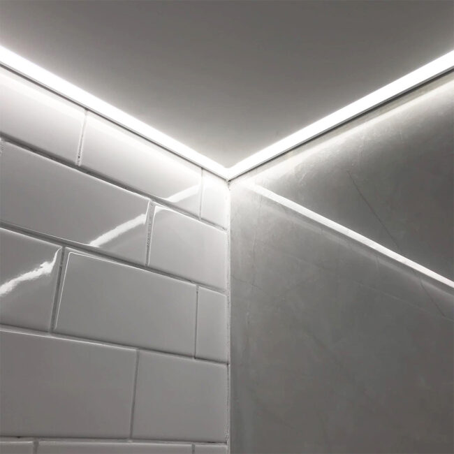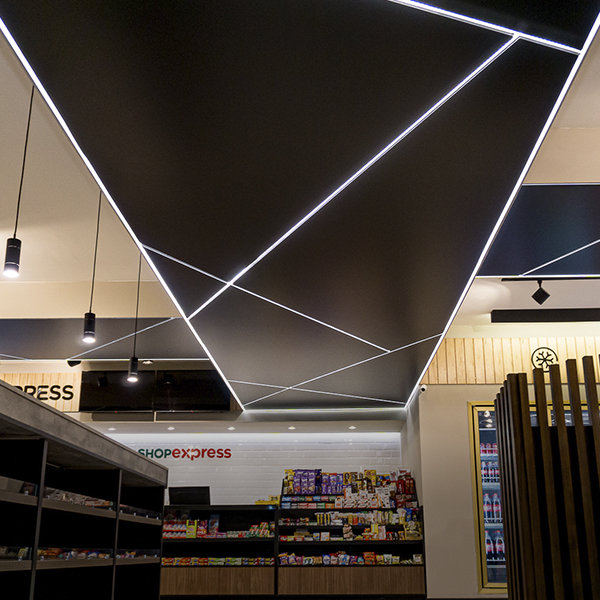 El sistema de Cielorrasos Tensados conserva su esencia —el anclaje y la elasticidad del film— incorporando perfiles diseñados para alojar iluminación LED, lo que permite integrar la iluminación y el plano del cielorraso en una misma solución que combina funcionalidad y un impecable acabado superficial.