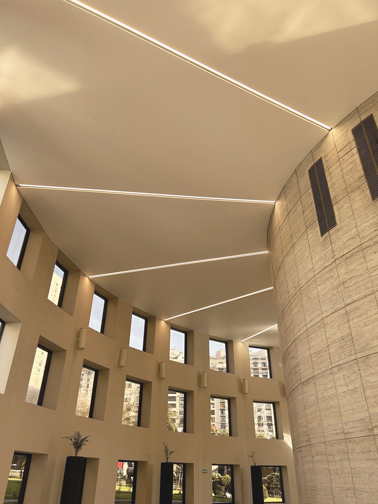 Esta configuración se potencia al materializar las divisiones entre paños como “calles de iluminación”, percibidas como líneas de luz que no solo enfatizan la idea rectora, sino que también aportan una funcionalidad indispensable y una estética distintiva al espacio.