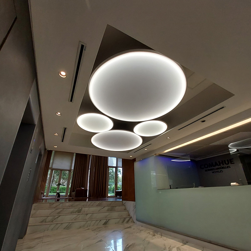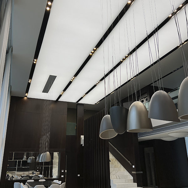 Las posibilidades del sistema de Cielorrasos Tensados, sumada a las variables lumínicas abren un amplio espectro de recursos para el diseño de los espacios.
